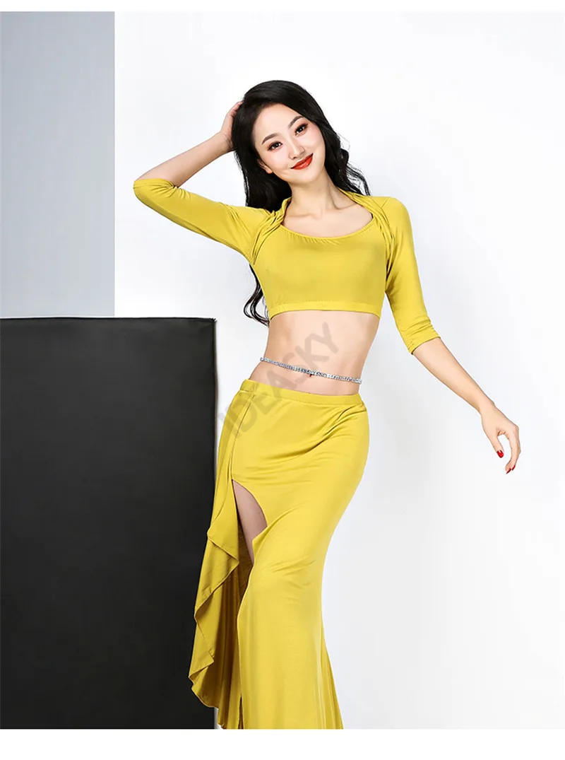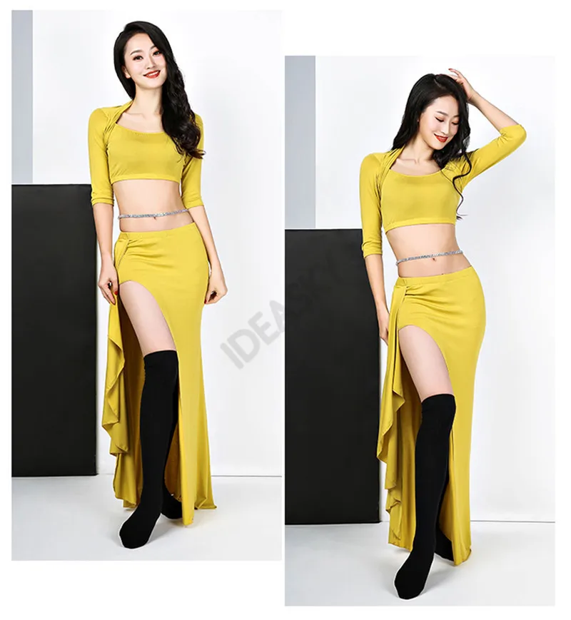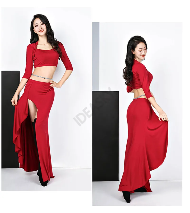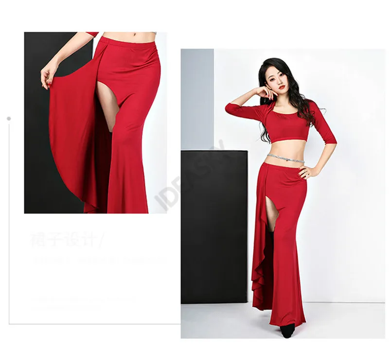 Длинная юбка с разрезом, набор костюма для танца живота, для выступлений в восточном стиле, профессиональный костюм для индийских танцев