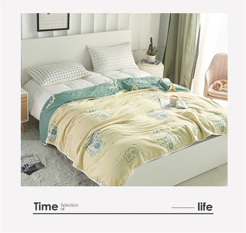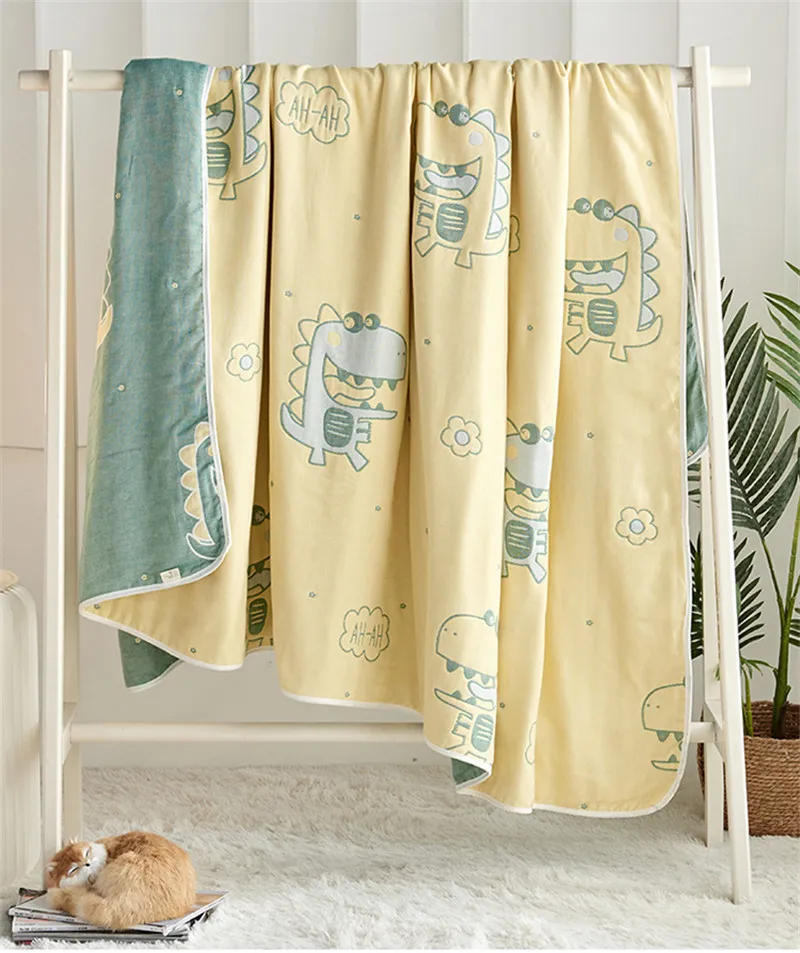 Весенне-летнее хлопковое Марлевое муслиновое одеяло на кровать с мультяшным рисунком Disnosaur, покрывало для кроватки с животными, мягкое удобное покрывало