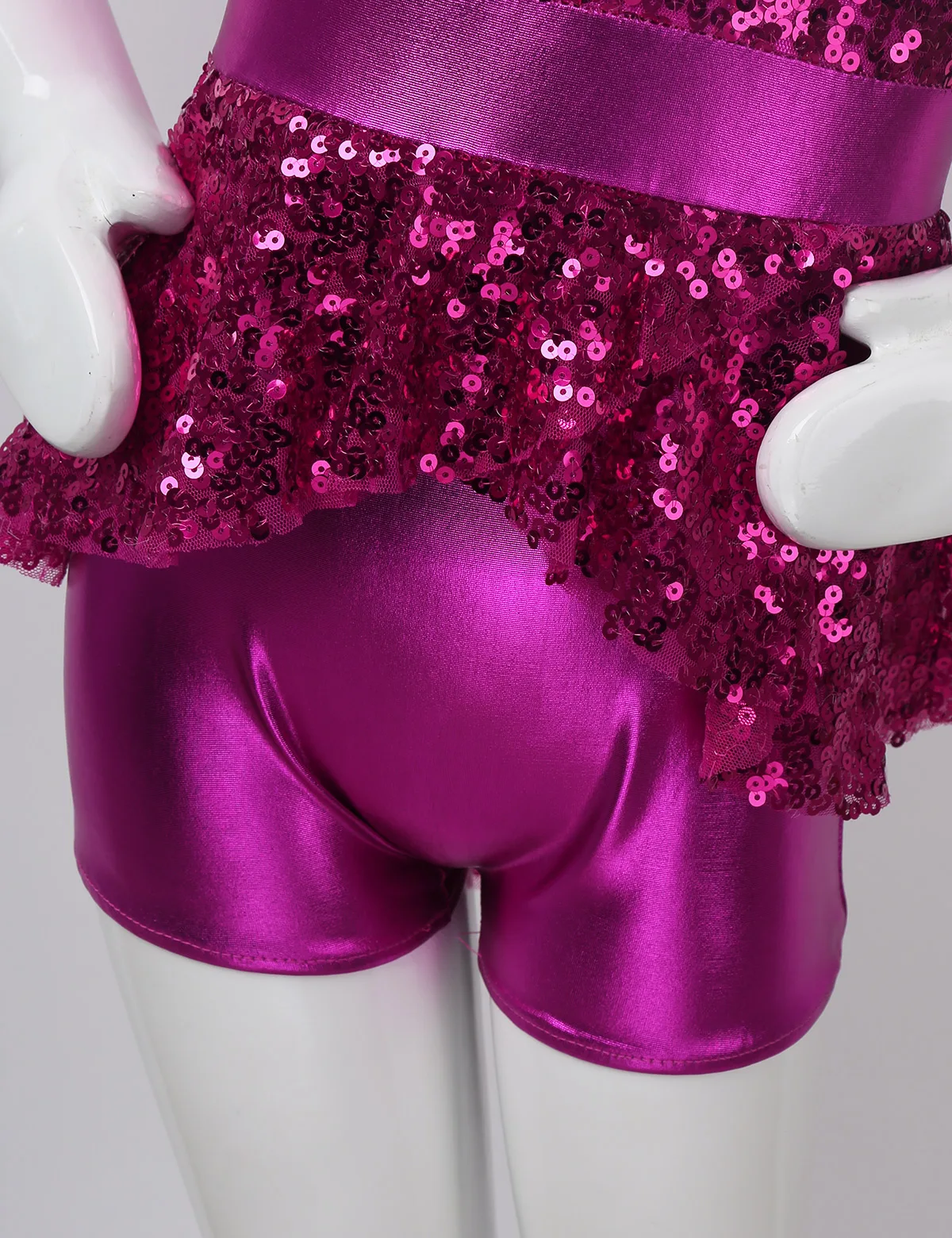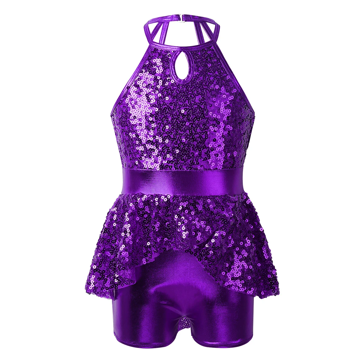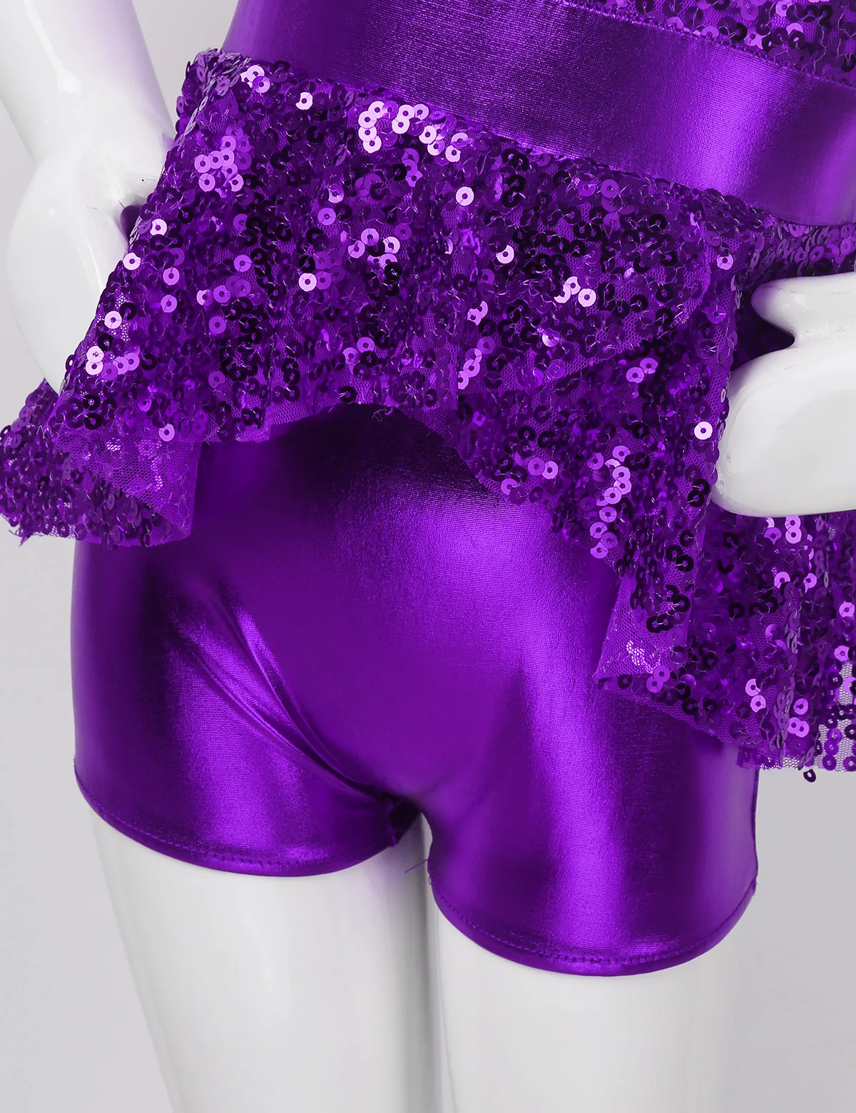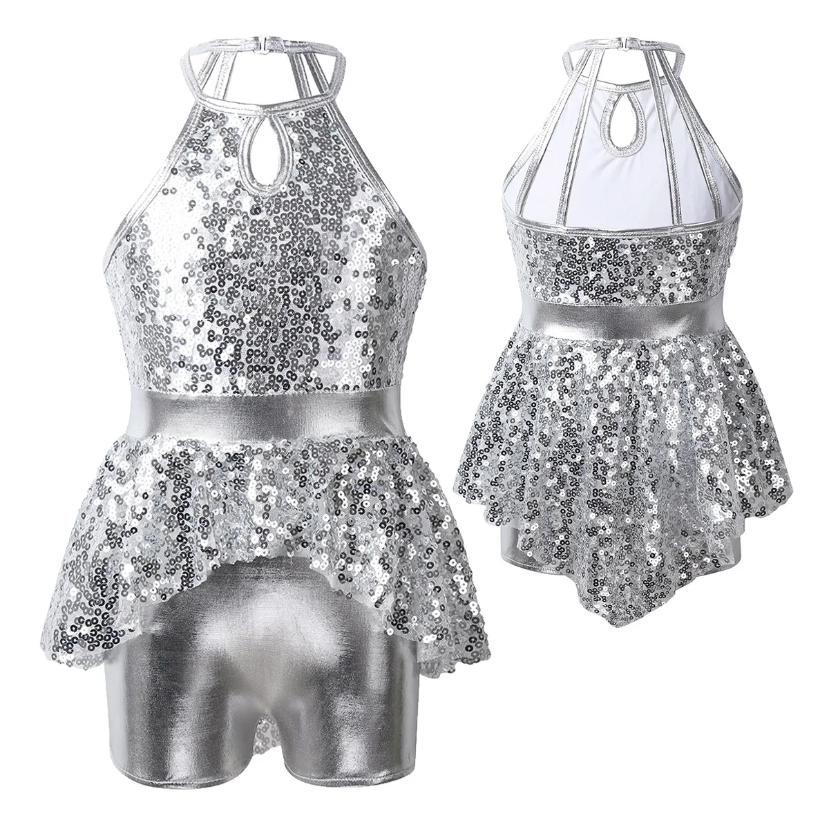 Глянцевый металлический вид. Приятная для кожи ткань, дышащая и удобная в носке. Стильная и блестящая Одежда для танцев для вашей девочки.