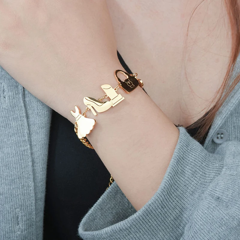 Высокая QualityTrendy покрытием 24K Gold Multi Форма медный браслет цепочка на руку золото Цвет браслеты ювелирные изделия для мужчин и женщин, подарок