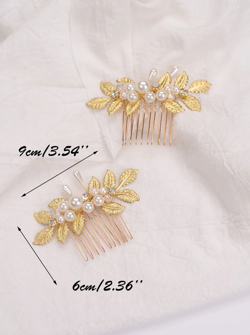 Материал: сплав и искусственный жемчуг Посылка включает в себя: два гребня для волос Этот головной убор используется для особых случаев, таких как свадьбы, банкет или вечерние. Изящное украшение сделает вас еще красивее.