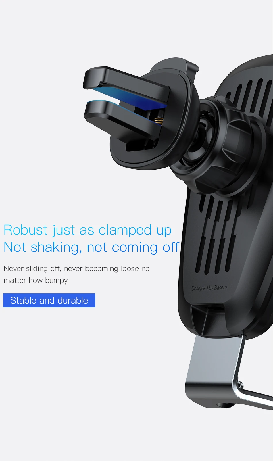 Gravity interlock principle, alloy clamping arms