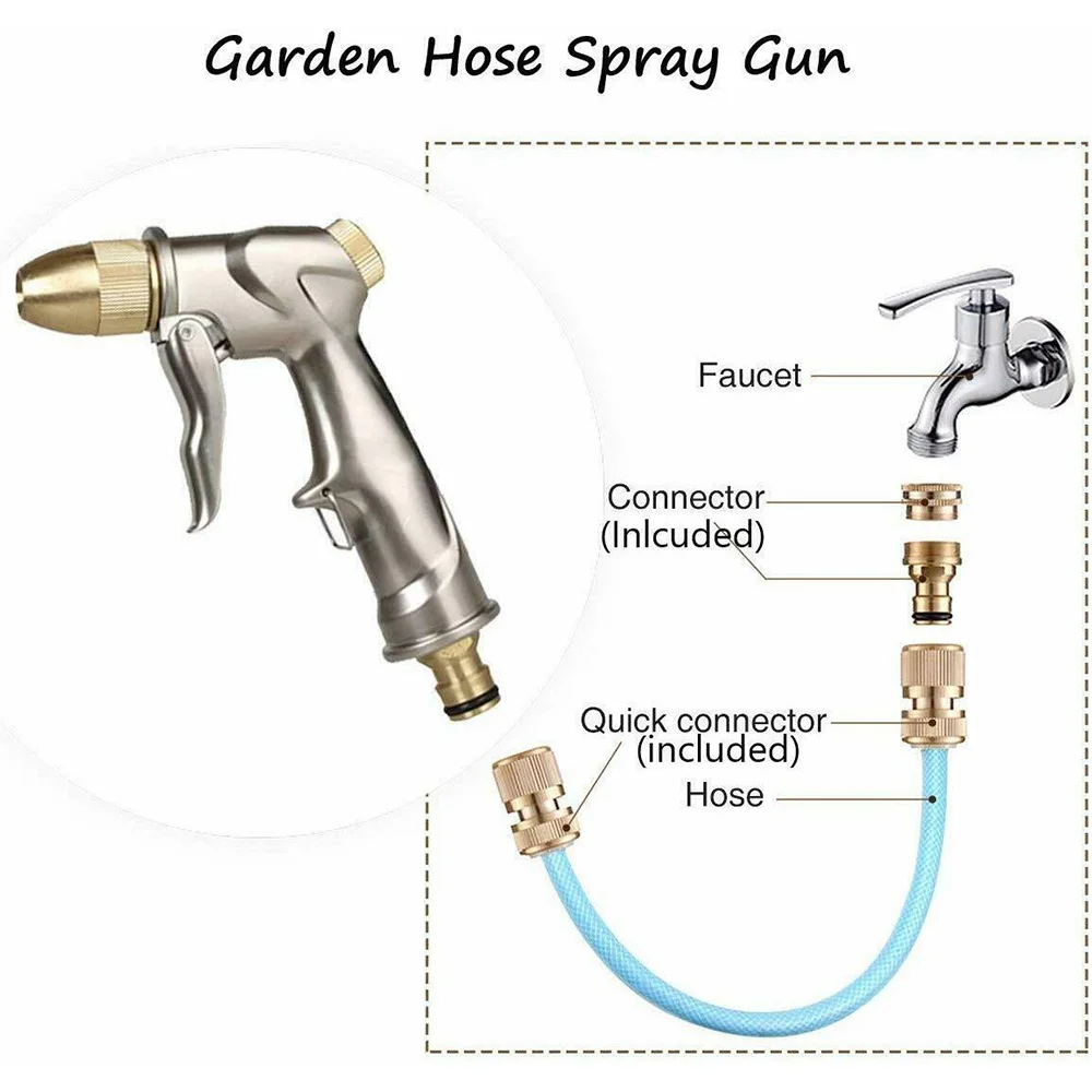 100% Brand New and quality Material: Zinc alloy(body) + Copper(Nozzle head) + Brass(Nozzle Tip) Color:As Pictures Shown Features: Anti-corrosion, high-pressure spray, and multi-spray modes Ideal for garden watering use and cleaning use. Strong water pressure makes cleaning easier. Multi-Spray modes make it both a useful and convenient tool. Note: Please allow 1-3cm differs due to manual measurement. Due to the different display and different light, the picture may not show the actual color of the item. Thanks for your understanding.