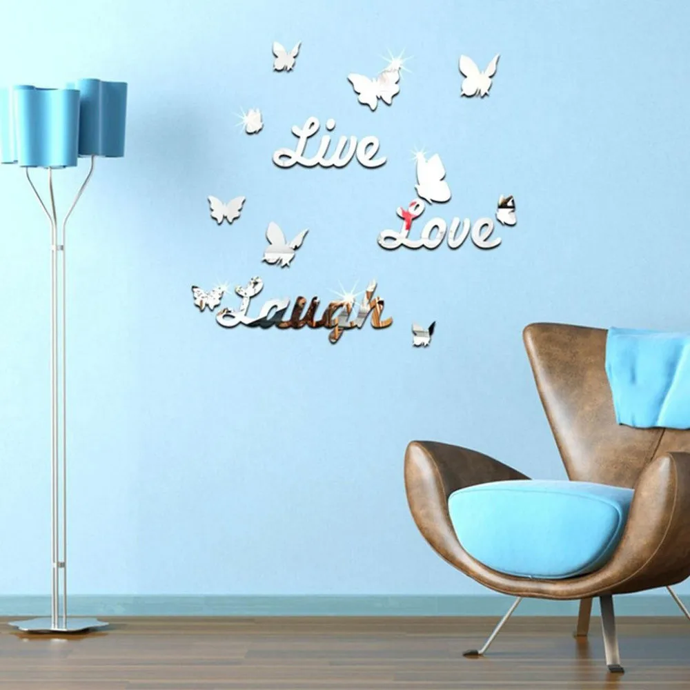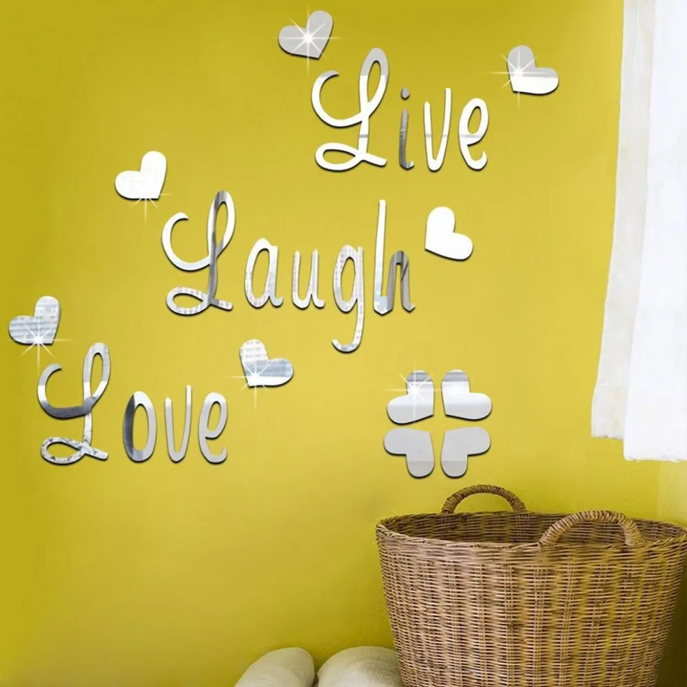 Живой смех любовь Цитата Съемные настенные художественные наклейки зеркальные наклейки DIY Декор комнаты