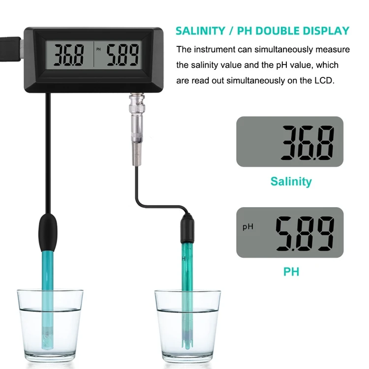 2 в 1 цифровой Онлайн РН-монитор солености, рН-тестер уровня соли для аквариума, бассейна, спа, морской воды, проверки качества 24 часа
