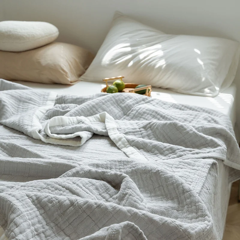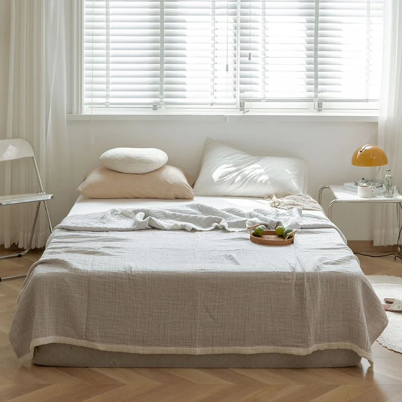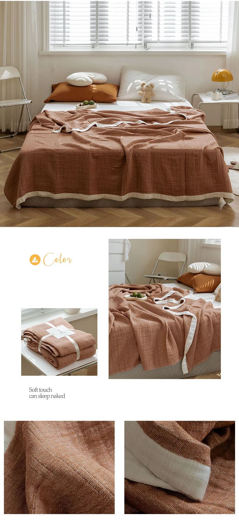 Летнее мягкое газовое одеяло, дышащее, приятное для кожи, для дивана, одеяло с белым краем, Декор для дома, покрывало, для взрослых, для детей, постельное белье