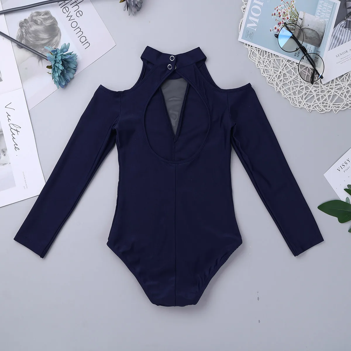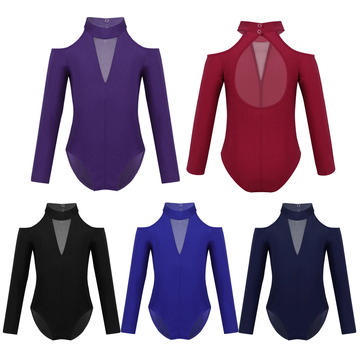 # XS-2XL, детский спортивный костюм с открытыми плечами, длинными рукавами и вырезом на спине для балета, гимнастики, гимнастики, боди, SZ 3-12
