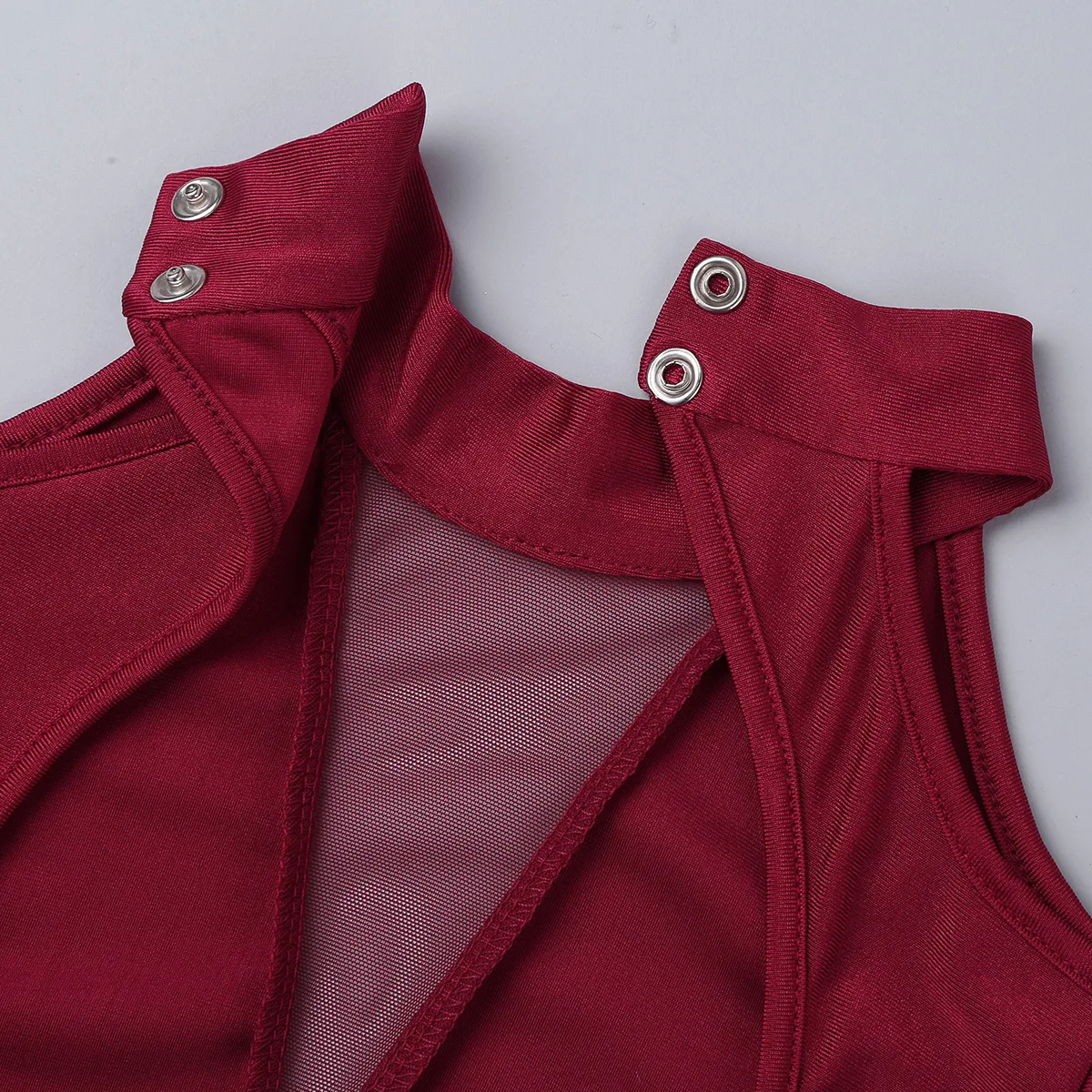 Длинный рукав, дизайн с открытыми плечами, ложный вырез с застежкой на пуговицы. Треугольная сетка спереди.