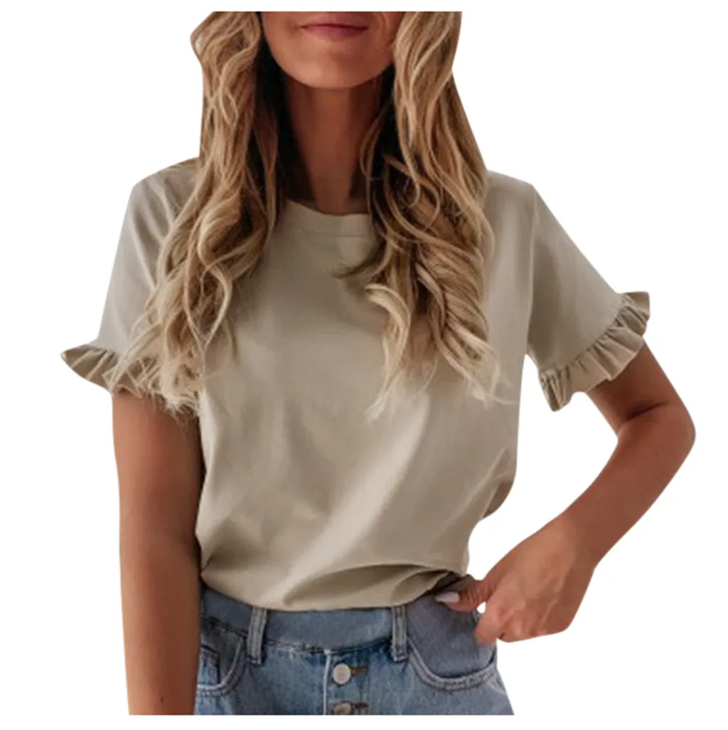 3. Рюшами O Шеи,КороткийРукава, Сплошной, Застежка на липучке. А Базовый Топ с небольшой яркостью, sНатурально, но модно. Он имеет идеальную длину, чтобы вы могли использовать его в своих штанах или шортах.