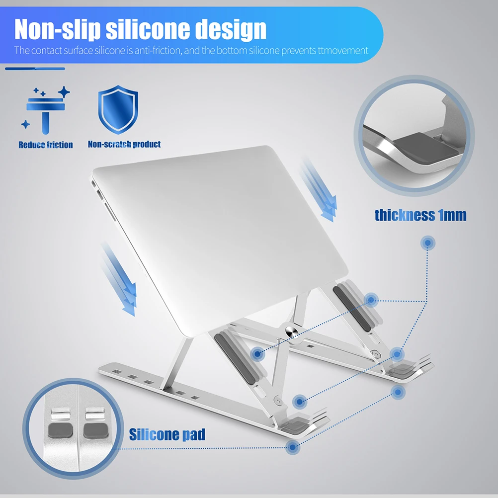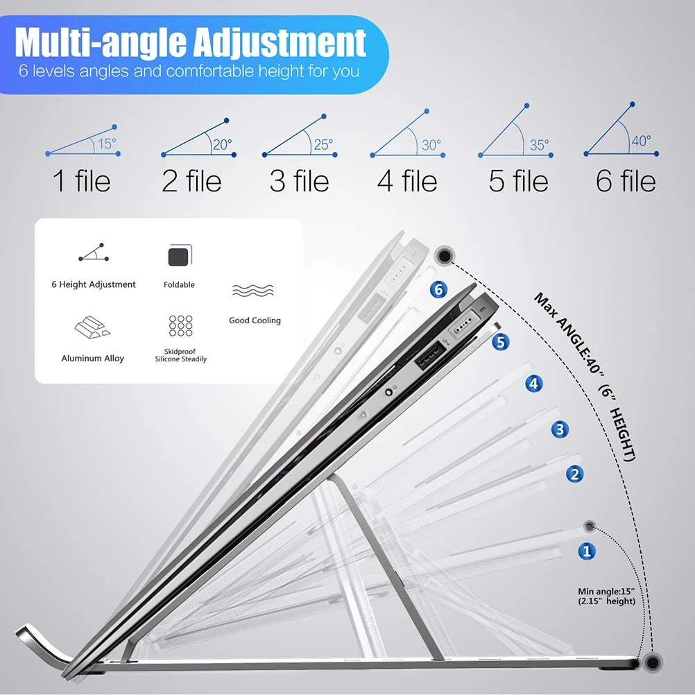 1. С использованием металлического алюминия, подставка для ноутбука-светильник, текстурированный. 2. Складная конструкция, удобная для работы, домашнего офиса и занимает очень мало места. 3. Конструкция 6 передач отвечает требованиям любого времени и подходит для любых привычек использования