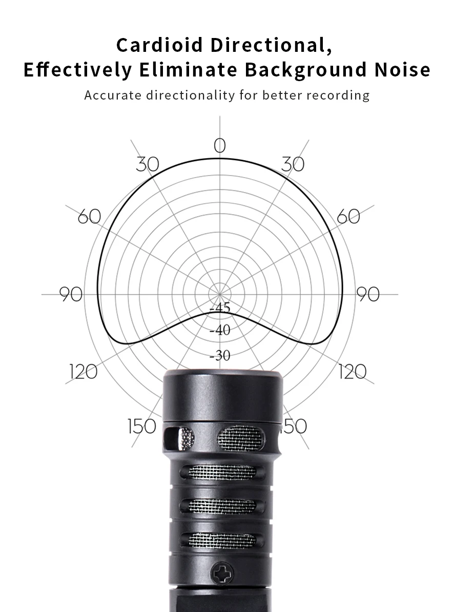 Полярный узор: кардиоид Частотная характеристика: 60 Гц ~ 20 кГц Сигнал/шум:>70 дБ Макс SPL:>100 дБ Разъем для наушников: 3,5 мм Требования к ОС: iOS 10 или выше Размер: 38x71x53мм Вес нетто: 36 г Рабочая температура: 0 ℃ ~ 50 ℃