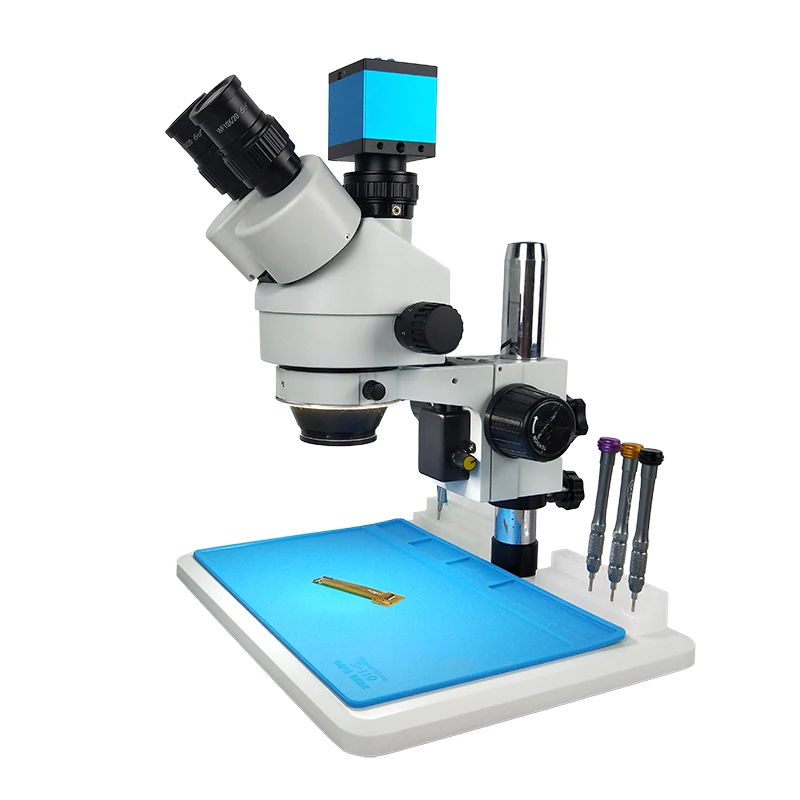 1x белый тринокулярный стерео микроскоп с подставкой для микроскопа (включая светодиодный светильник);