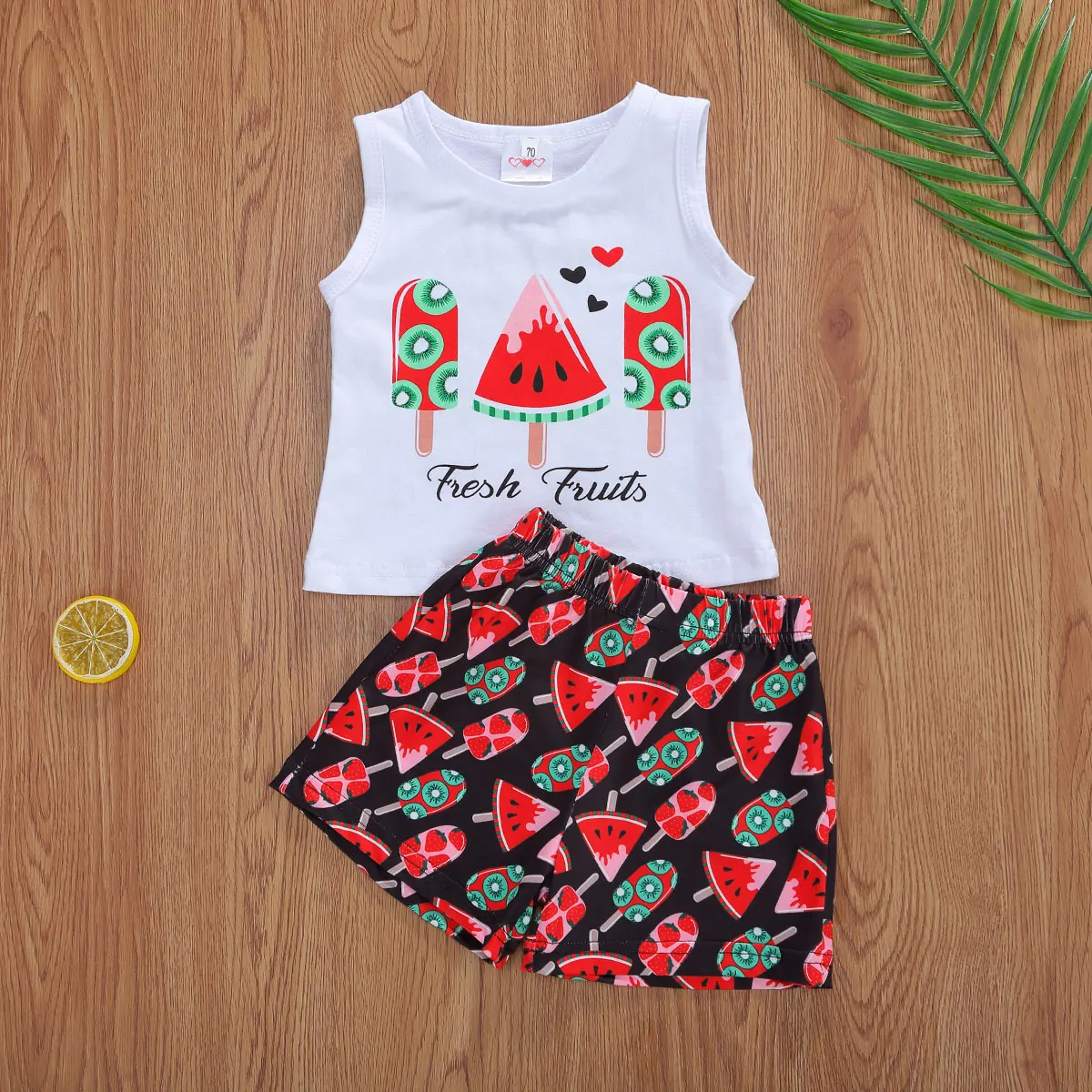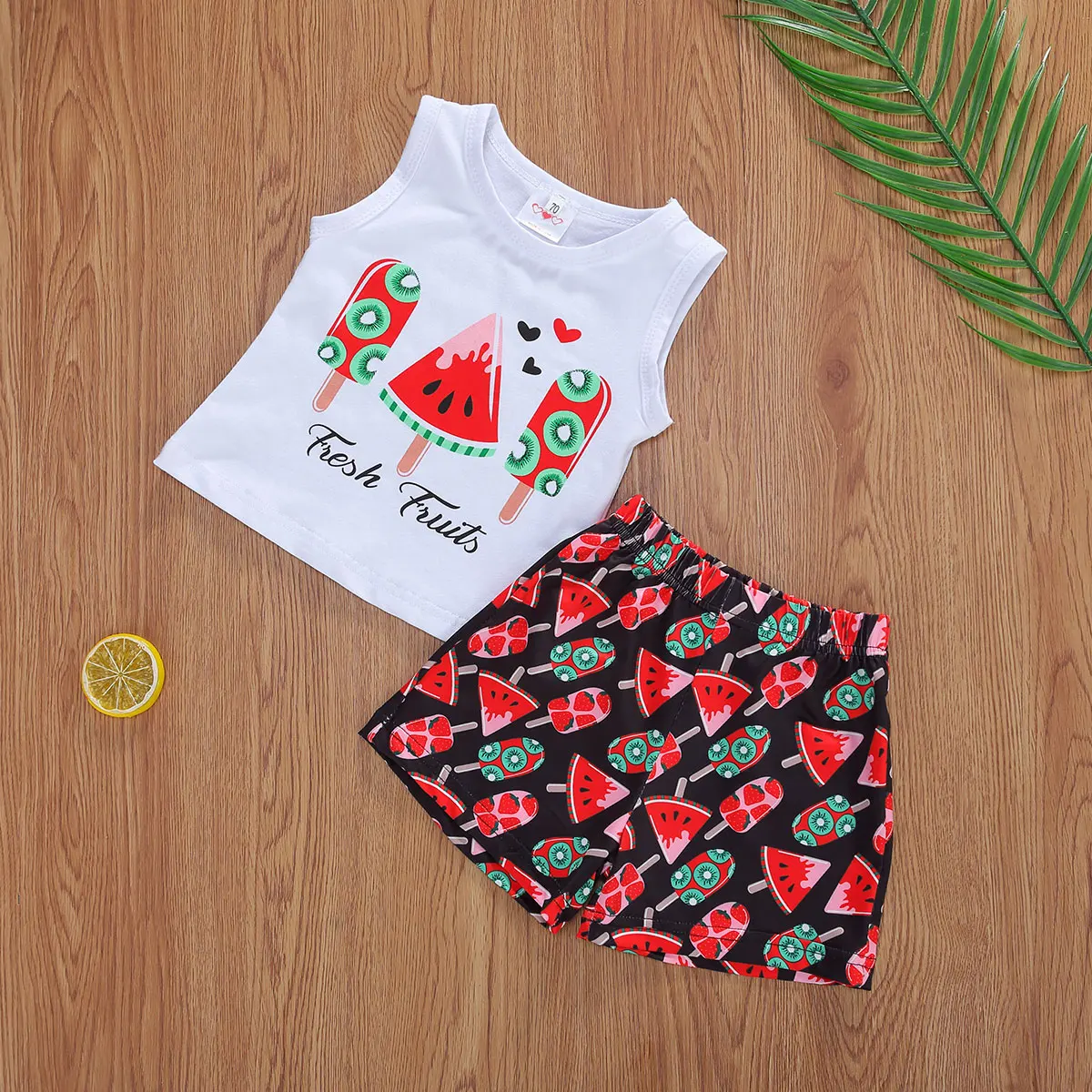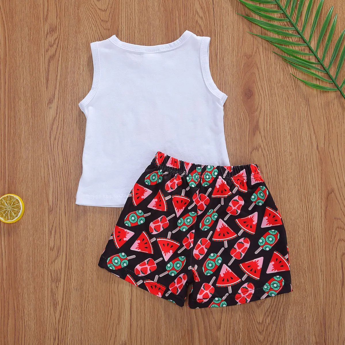 Милый жилет с рисунком арбуза и шорты для маленьких девочек. Очень мягкий и эластичный хлопковый материал делает детскую одежду удобной и дышащей.