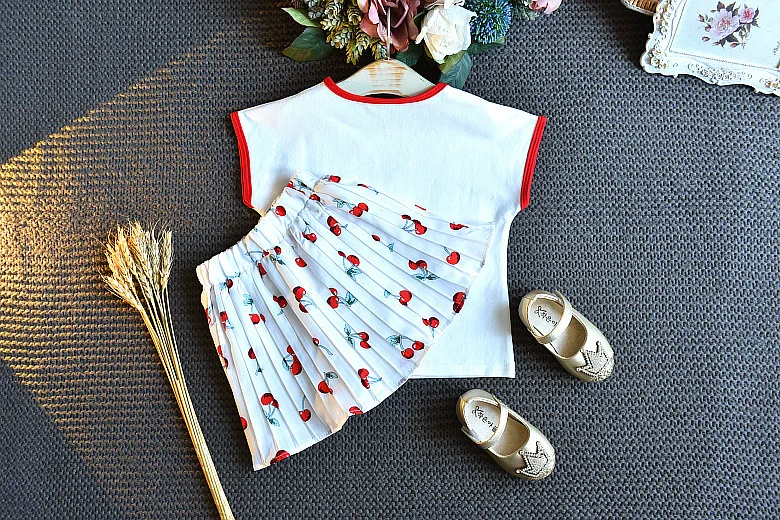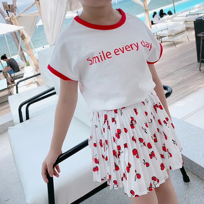 Детская одежда, одежда для девочек 2020, летняя модная футболка с надписью, топ, короткая юбка с вишенками, костюм для малышей 3-8 лет, качественная детская одежда