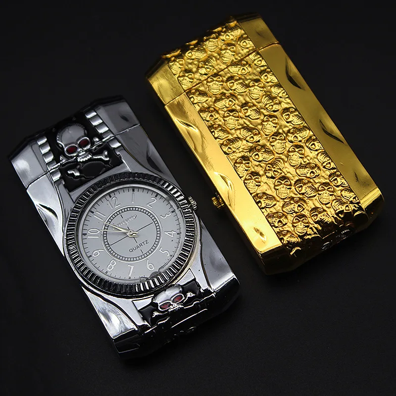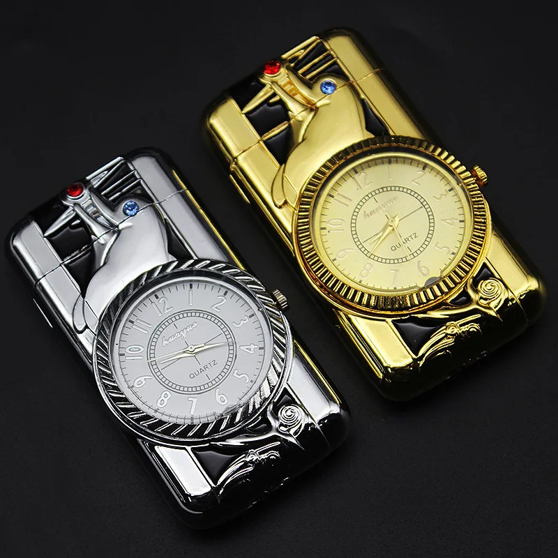 Роскошные золотые часы, реактивфонарь, зажигалка, турбо газовая зажигалка, металлическая ветрозащитная Зажигалка для сигар, светодиодная надувная бензиновая Бутановая Зажигалка