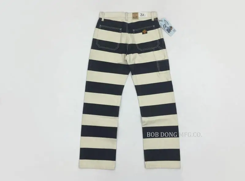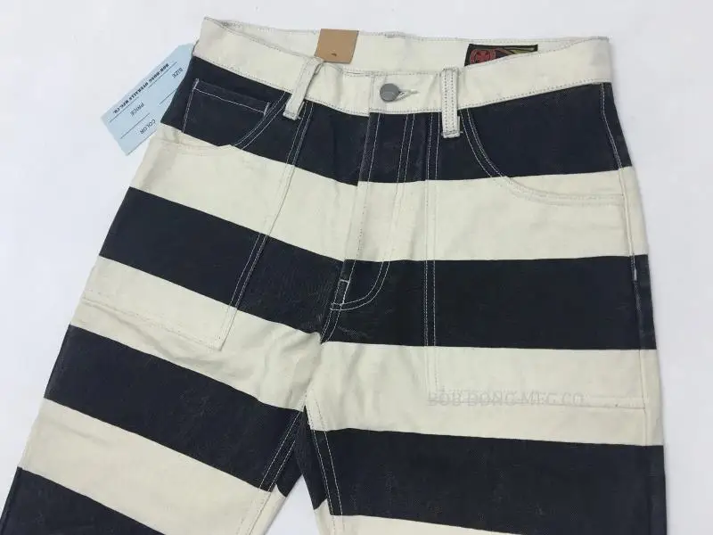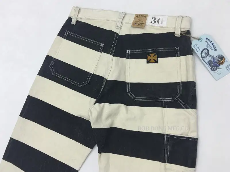 BOB DONG 16oz Тюремные штаны Мотоциклетные черные белые полосатые брюки с несколькими карманами