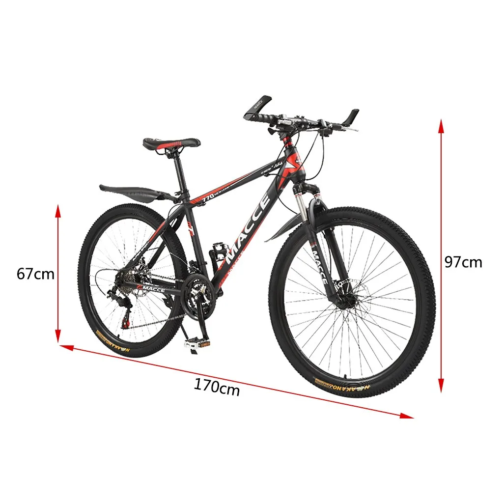 Особенности: Магниевое колесо: светильник, прочный Велосипедный использует Высокоуглеродистая сталь горный велосипед двойной подвеской, 24 передачи Промежуточного Вала. 26 дюймов 6-спицевый стильные диски-это безопаснее и прочнее. Передние и задние дисковые тормоза и быстрый выпуск. Посылка включает в себя бесплатные педали и удобные сиденья. Вес всадника: 100 кг, высота всадника: 160 см-180 см. Стильная, высококлассная подвеска, Shimanos Derailleur, SHImanos EF500 3*7 рычаг переключения передач Мужской/женский велосипед Аксессуары введение: F/переключатель: Shimanos TZ-30 R/Derailleur: Shimanos TZ-50 Циферблат: EF51-7 Рама/вилка: смелая передняя вилка Руль/руль: одна ручка Шины: спицевое колесо Рама: Высокоуглеродистая сталь амортизирующая складная рама Тормоза: болтовые дисковые тормоза Tower wheel: ATA без позиционирования tower wheel Педаль: педаль для горного велосипеда Цепь: без позиционирования Описание продукта: Размер шин: 26 дюймов Размер изделия: 172 x (80-95) см/67,7 x (31,5-37,4) дюймов Размер складывания продукта: 100x95x35 см Размер упаковки продукта: 135x72x19 см/52x28x7.5in Вес брутто: 20 кг Продукты включают в себя: 1XBike