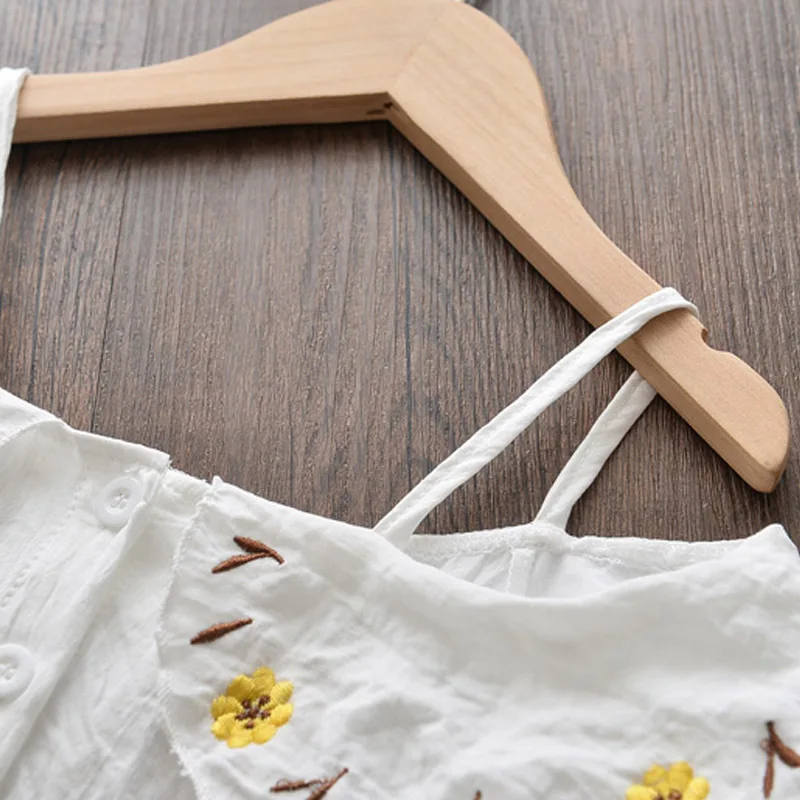 Детский Повседневный комплект одежды, летний топ с цветочной вышивкой, желтые шорты, костюм для девочек, Милый хлопковый детский комплект одежды для девочек