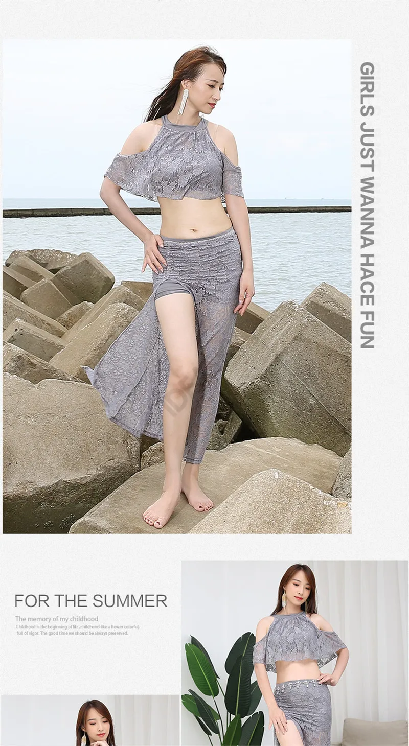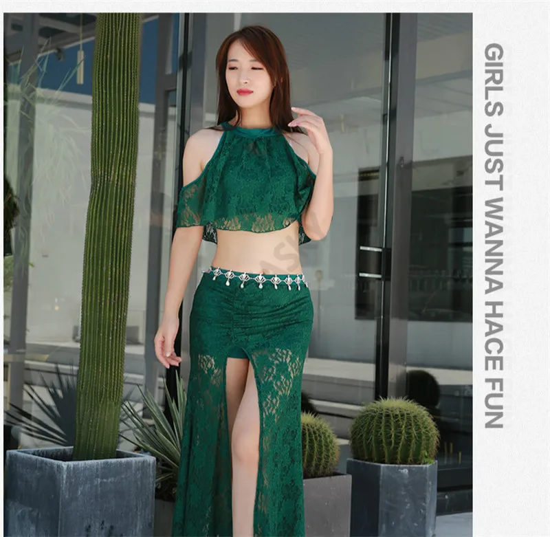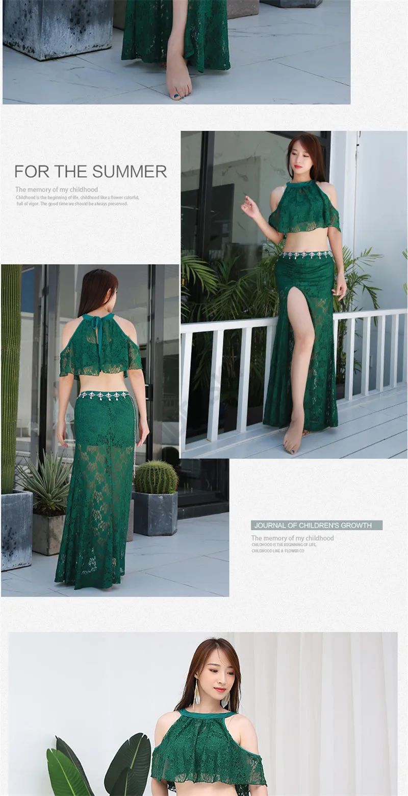 Женский сексуальный костюм для танца живота, индийская одежда для тренировок в восточном стиле, кружевной топ, длинная юбка