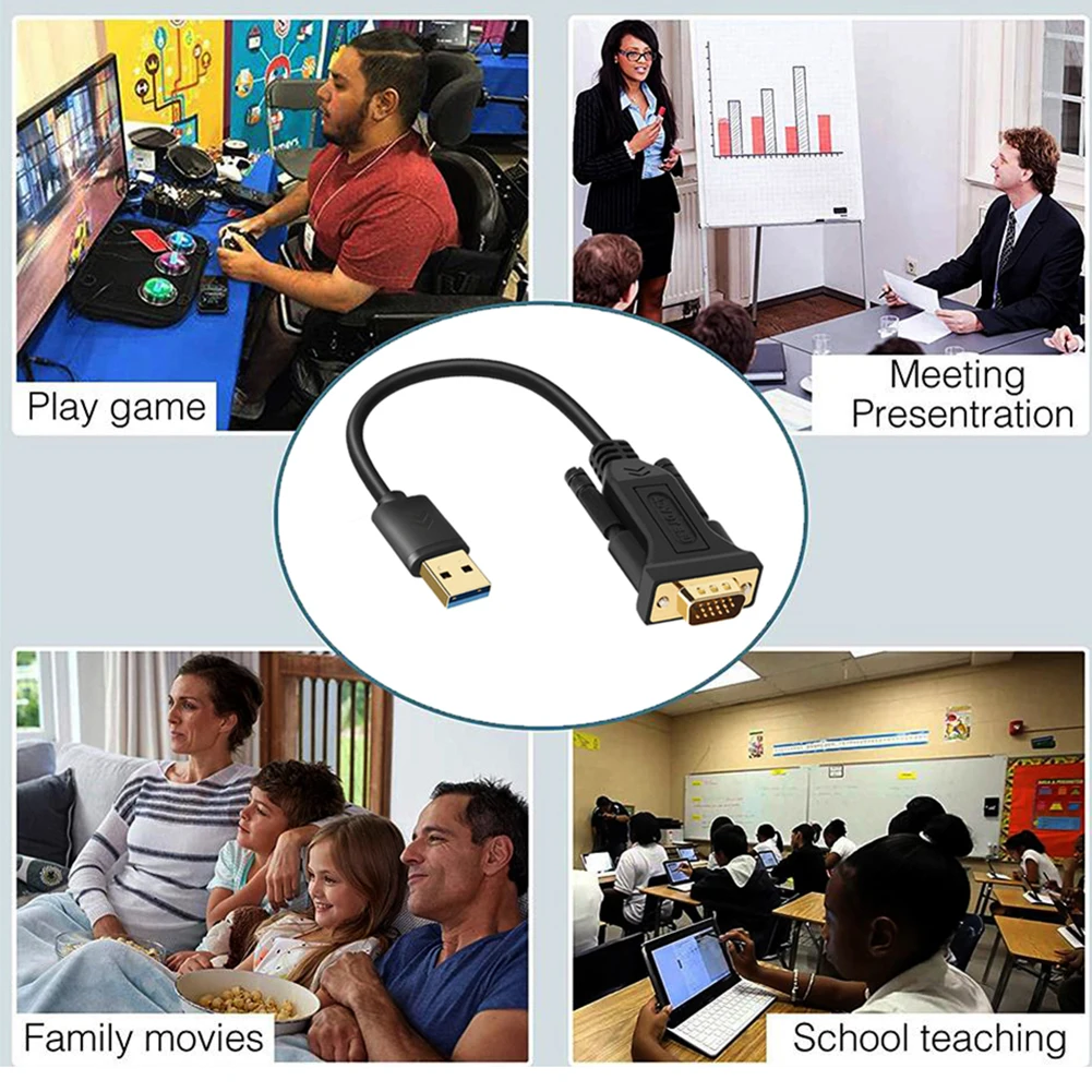 * Сейчас у многих ноутбуков нет порта VGA, кабель USB 3,0-VGA может конвертировать usb-порт ноутбука в порт VGA, поэтому его легко подключить к монитору.