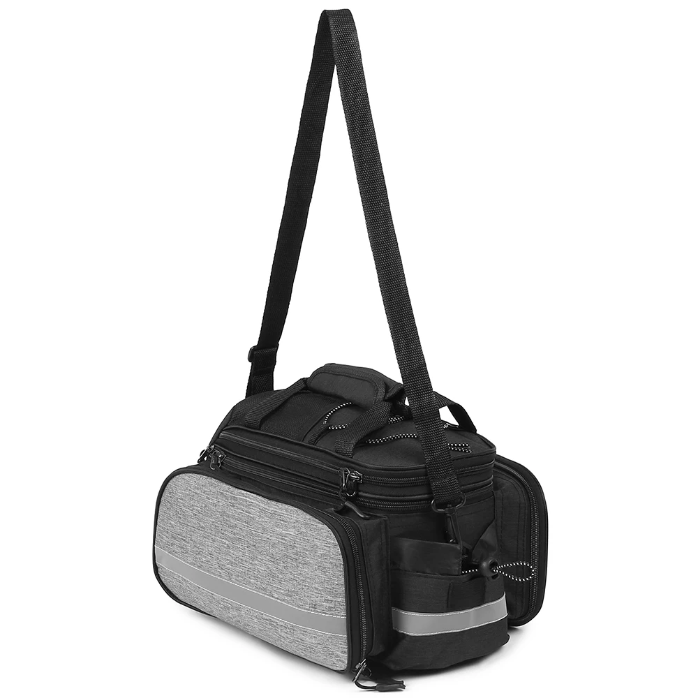 Двойная защита-четыре стороны велосипедного багажника утолщены, чтобы обеспечить амортизацию и уменьшить вибрацию при езде по неровным дорогам. Канатная Пряжка отсека чайника предназначена для легкого снятия и фиксации чайника. Отделение для чайника оснащено широкополыми лампами и светоотражающими полосками, с широкими отражениями с обеих сторон сумки для двойной безопасности при езде.