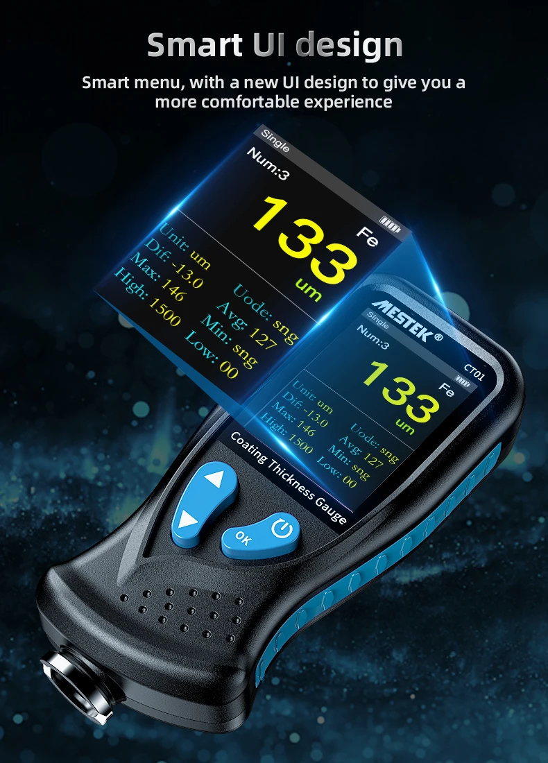 Толщиномер покрытия Голосовое вещание/четырехстороннее Вращение экрана/1500 хранение данных