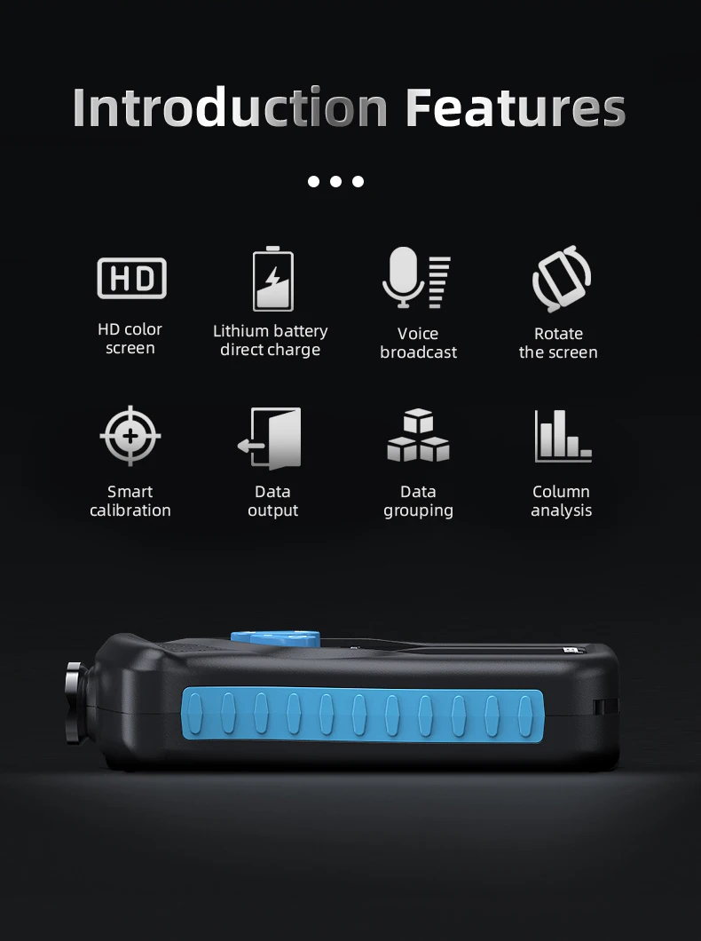 Цветной экран HD Прямая зарядка литиевой батареи Голосовая передача Поверните экран Умная калибровка Выход данных Группировка данных Анализ столбцов