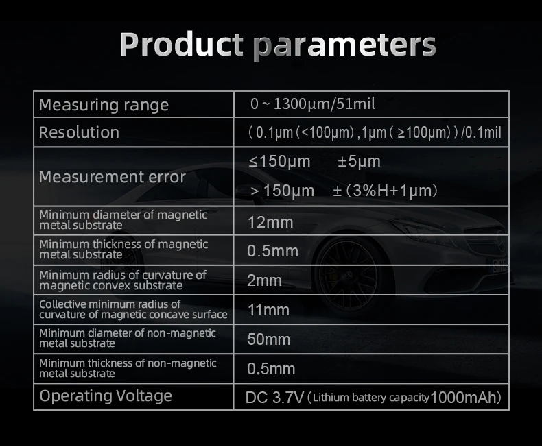 Области применения продукта -Немагнитное покрытие-магнитная Подложка: автомобильная краска, краска -Непроводящее покрытие-немагнитная металлическая Подложка: резина, эмаль