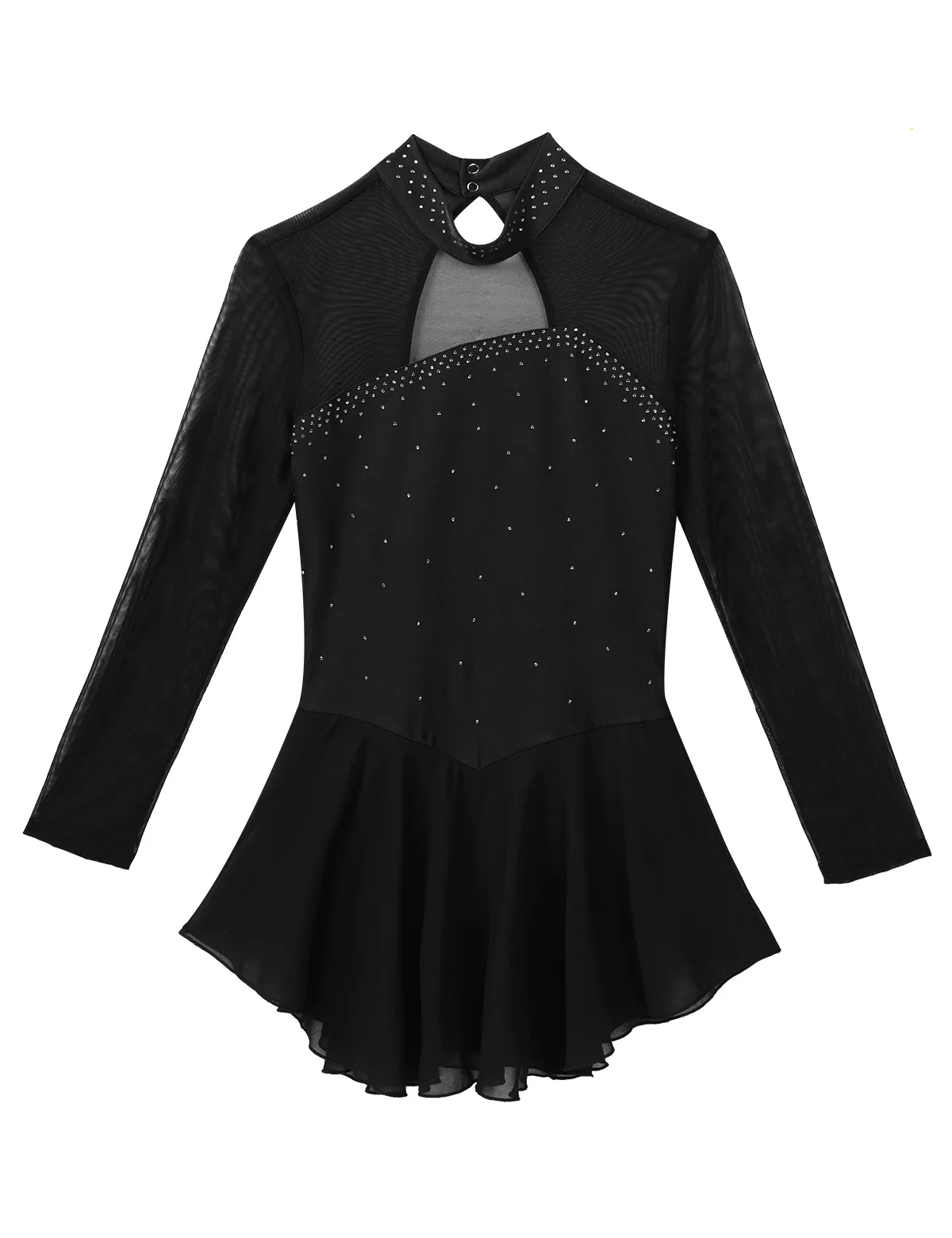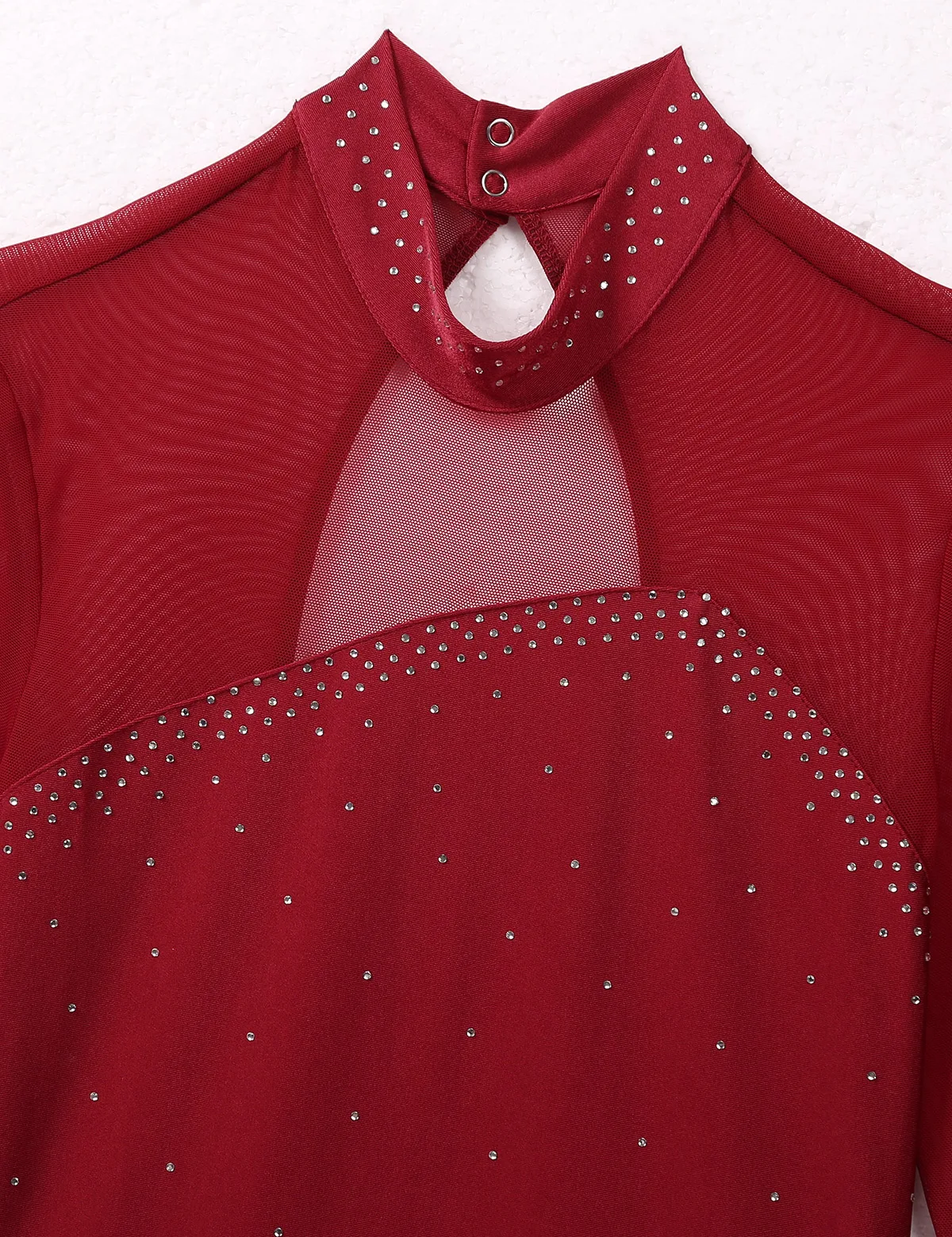 Воротник-стойка с нажмите на пуговицах, явный порочной Девы из сетчатой ткани с длинными рукавами и отверстие для ключа сзади, Топ Лиф украшен блестящими Стразы.
