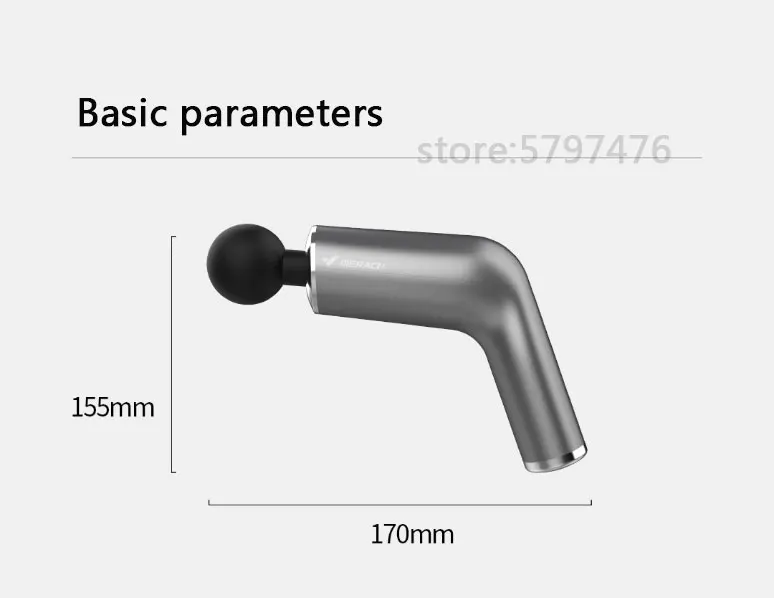 Бренд: Merach NEX fascia gun Модель: MR-1536 Вес нетто: 700 г Регулировка зубчатой передачи: 5 регулировок зубчатой передачи Скорость передачи: 2200 ~ 3200 об/мин Мотор: 24V бесщеточный мотор Шум: 30 дБ Амплитуда: 10,5 мм Выбор цвета: ледяное озеро, темно-серый, Haoyue белый Метод зарядки: Магнитная Зарядка Размер изделия: 170 мм x 59 мм x 155 мм