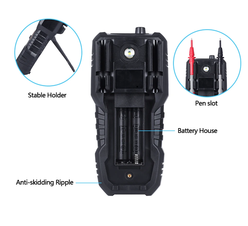 Максимальный дисплей: 6000 отсчетов Истинный RMS/Автоматический диапазон DCV: 600 мВ/6 В/60 в/600 В/1000 В ± 0.5% + 3 Переменный ток: 6 В/60 в/600 В/750 В ± 0.8% + 3 DCA: 60uA/6mA/60ма/600mA ± 0.8% + 3 знака после 10A ± 1.2% + 3 А: 6mA/60ма/600mA ± 1.0% + 3 знака после 10A ± 1.5% + 3 Сопротивление: 600/6k/60k/600k/6M ± 0.8% + 3 60 МОм ± 1.2% + 3 Постоянной ёмкости, универсальный конденсатор: 6nf/60nf/600nf/6 мкФ/60 мкФ/600 мкФ/6MF ± 4.0% + 3 знака после 100MF ± 5.0% + 3 Частота: 60/600/6k/60k60 0k/6M/10 МГц ± 1.0% + 3 Передаточное число: 5%-95% ± 2.0% + 3 Температура: -20 ℃-1000 ℃/-4 ℉-1832 ± 1.0% + 3 Бесконтактное Обнаружение напряжения: Да. Диодный тест: Да. Температурный тест: Да. Индикация низкого напряжения: Да. Автоматическое отключение: Да. Тест вкл. ВЫКЛ.: Да. Подсветка: Да. Фонарик: Да.