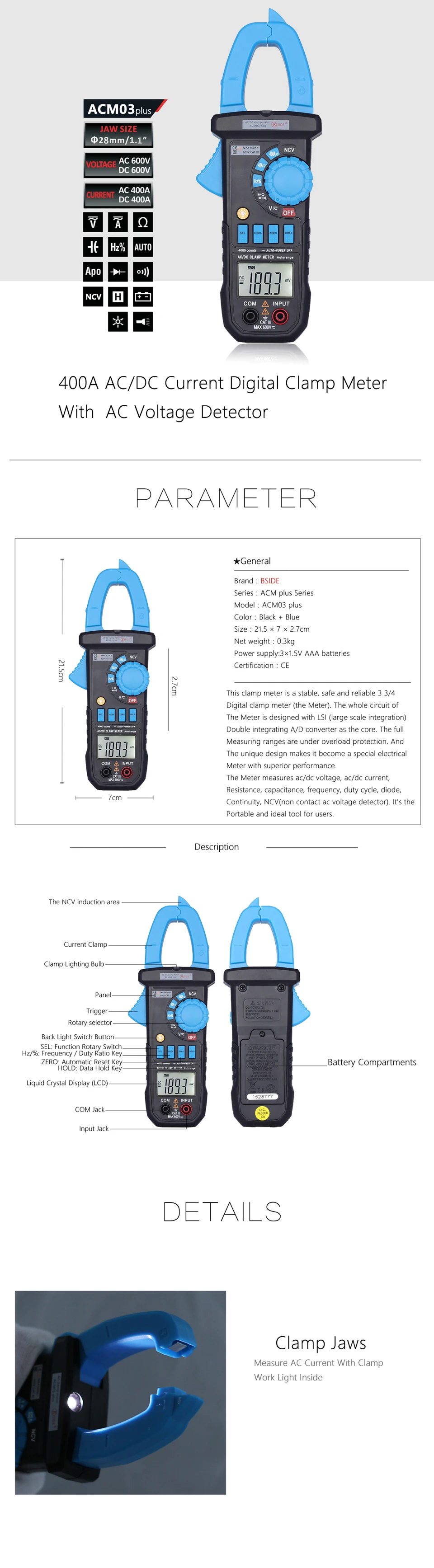 ACM03plus DC переменный ток 400A Клещи многофункциональный мультиметр