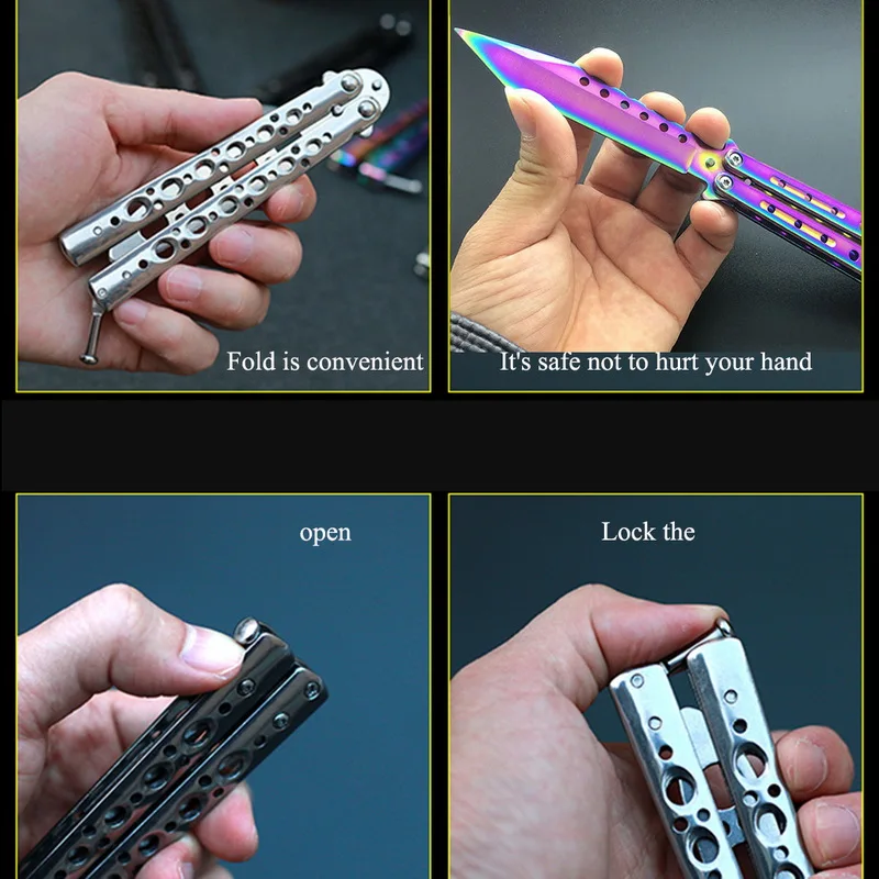 Это идеальный складной тренировочный нож-бабочка из нержавеющей стали, вы можете практиковаться, не вредно.