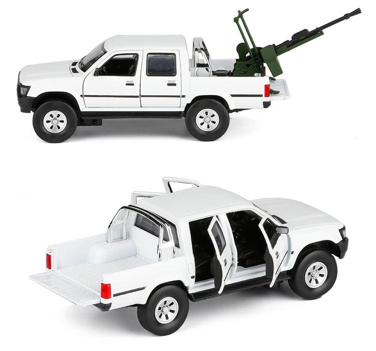 Бренд: JK по низкой цене Название: Hilux Pickup Соотношение: 1:32 Место происхождения: Китай Качество материала: металл + пластик + резина Упаковка: пузырь Обёрточная бумага Размеры: 16 см * 5,5 см * 5,5 см Назначение: подарок для детей, сбор Функция: Шесть Дверей открываются и нажимаются на скольжение, потрясающий звук и свет Батарея: без Батарея