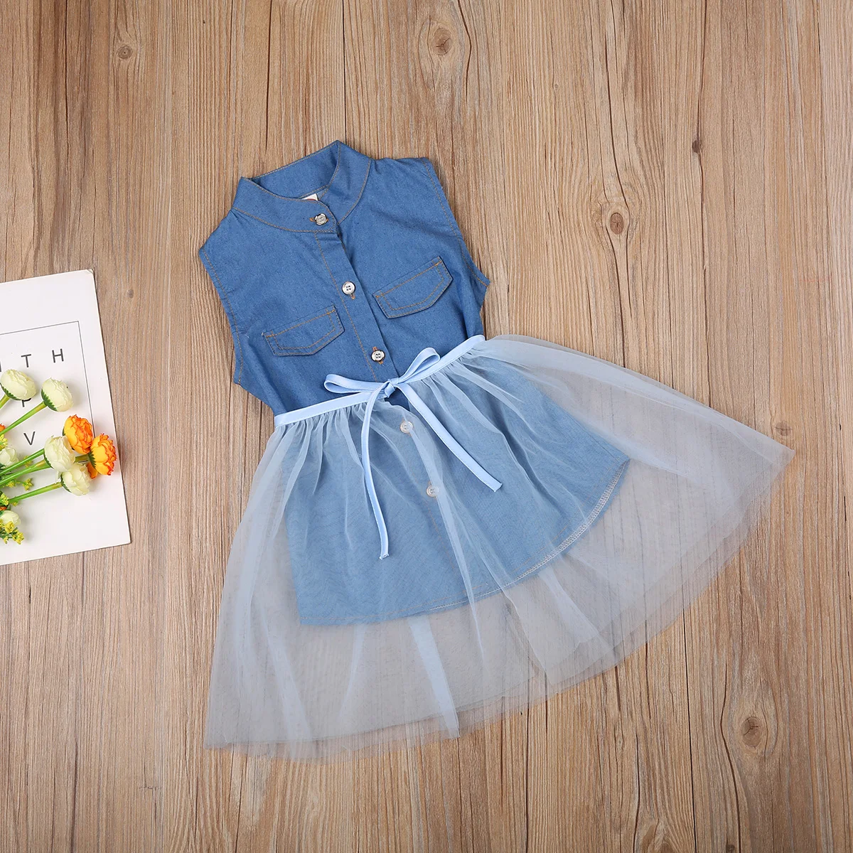 1 * джинсовое платье без рукавов + 1 * сетчатая юбка