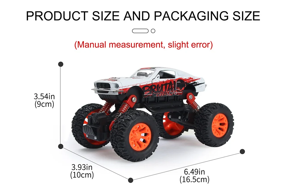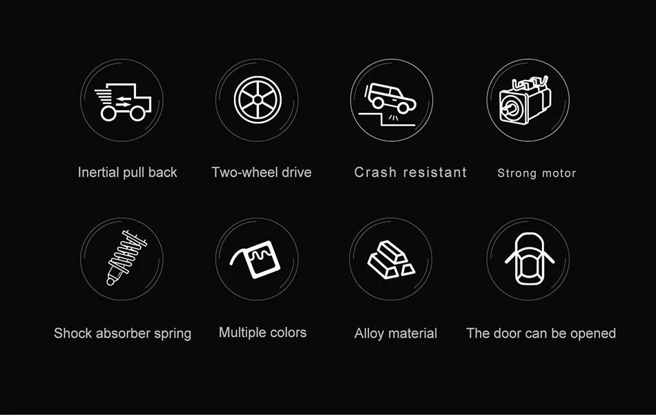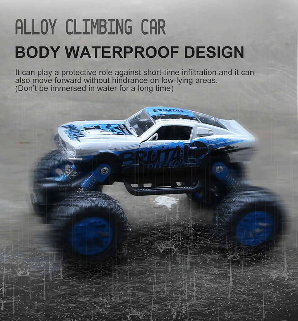 1. Высококачественный корпус из сплава, прочный и устойчивый к столкновениям, более прочный. 2. Имитация дизайна-двери автомобиля могут быть открыты и имитация салона автомобиля. 3. Оснащен пружинами-привод более плавно. 4. Двухмоторное скалолазание более легко. 5. Противоскользящие гибкие шины-изготовлены из резинового материала для увеличения трения, что позволяет легко ездить на любой земле.
