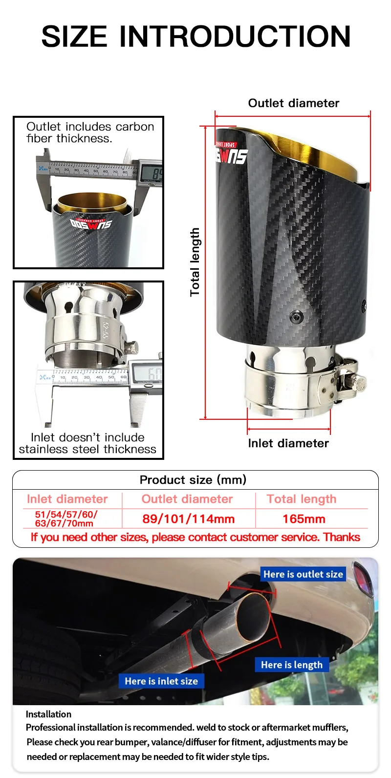 Фитинг: для многих автомобилей с диаметром трубы 51 мм/60 мм, подходит для DIY. Перед покупкой, Пожалуйста, измерьте выхлопную часть вашего автомобиля может быть подходит для установки, продукт является модифицированной частью выхлопной трубы.