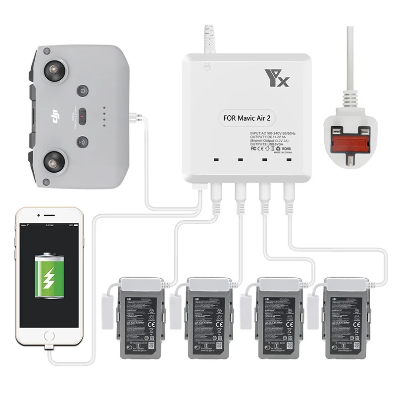 Зарядное устройство DJI Mavic Air 2, мультизарядное устройство с пультом дистанционного управления для аккумуляторов Mavic Air 2, аксессуары для быстрой зарядки