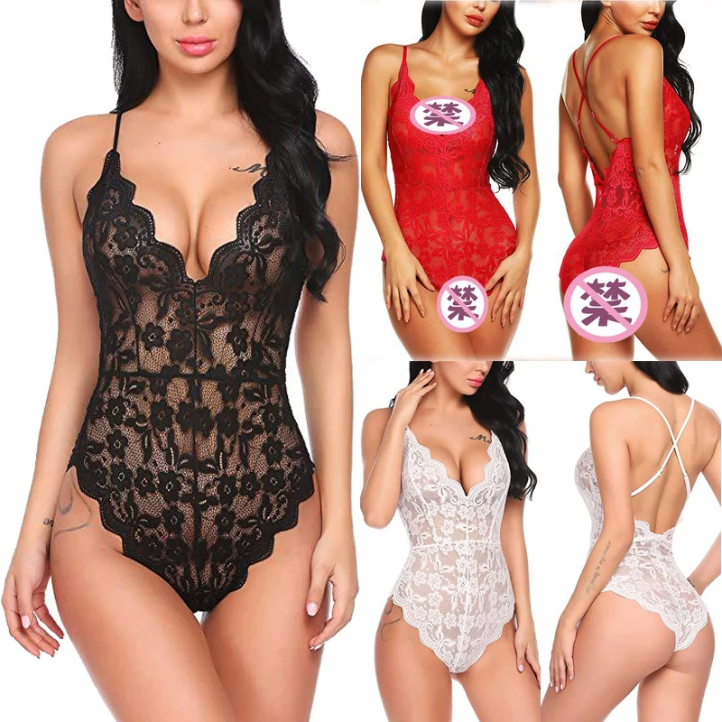 Цельный женский сексуальный прозрачный кружевной сетчатый однотонный боди с v-образным вырезом Монокини пуш-ап бикини с подкладкой Клубная одежда эротический сексуальный костюм