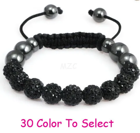 Min.$15 Mixed Order+Free Shipping+Gift.Red Black mixed hot 10mm micro pave cz Disco Beads Crystal Women Men crystal Bracelet.