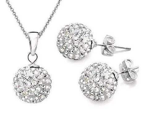 Горячая распродажа! 10 мм Серьги + серебряные цепочки кристалл микро-диско шар серебряные хрустальные серьги ожерелье набор ювелирных изделий оптом.