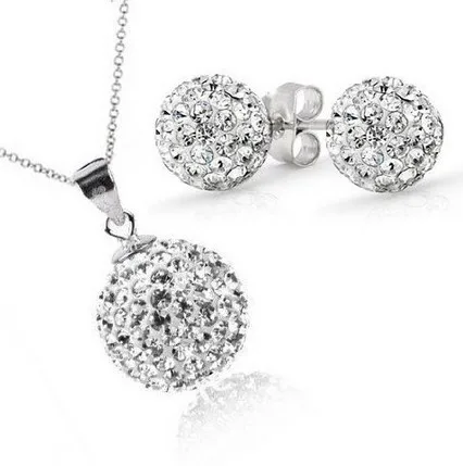 Горячая Распродажа! Бесплатная доставка 10 мм белый кристалл микро диско шар серебро кристалл серьги ожерелье набор ювелирных изделий оптом.