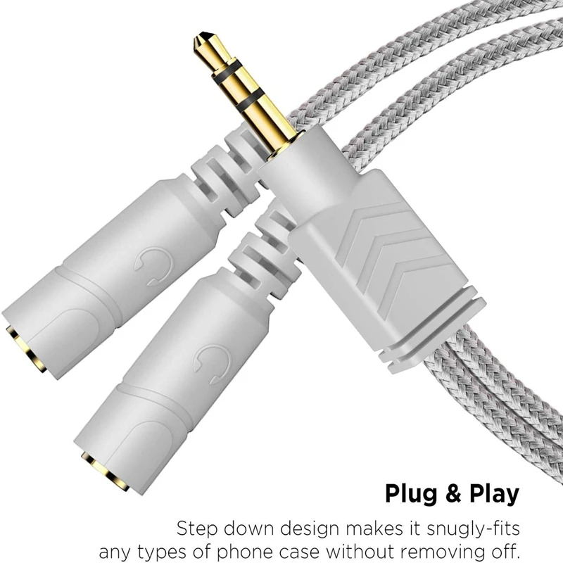 Plug & Play: программное обеспечение не требуется. Легко подключить 2 пары наушников к одному 3,5 мм мини-джек с помощью этого адаптера, которая совместима с большинством устройств с разъемом 3,5 мм мини-разъем, в том числе совсем портативный устройствами ввода-вывода, телефоны и планшеты с зарядными устройствами.