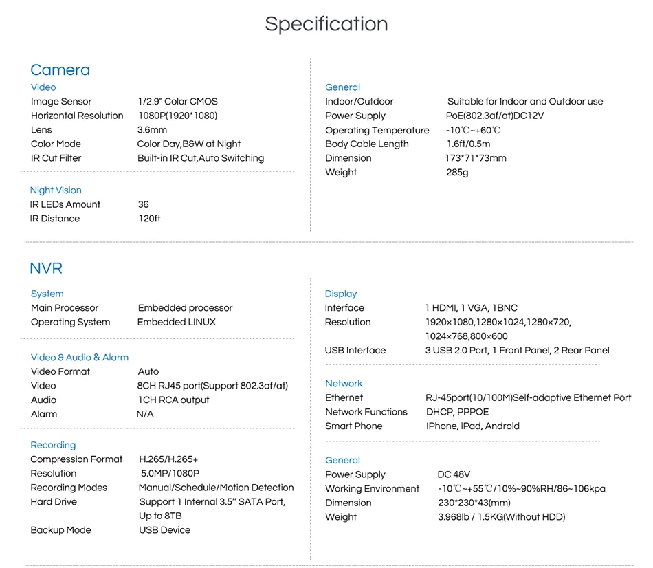 Поддержка 720p/1080p/3MP/4MP/5MP видео вход, Расширьте до 8 шт. PoE камеры в общей сложности.