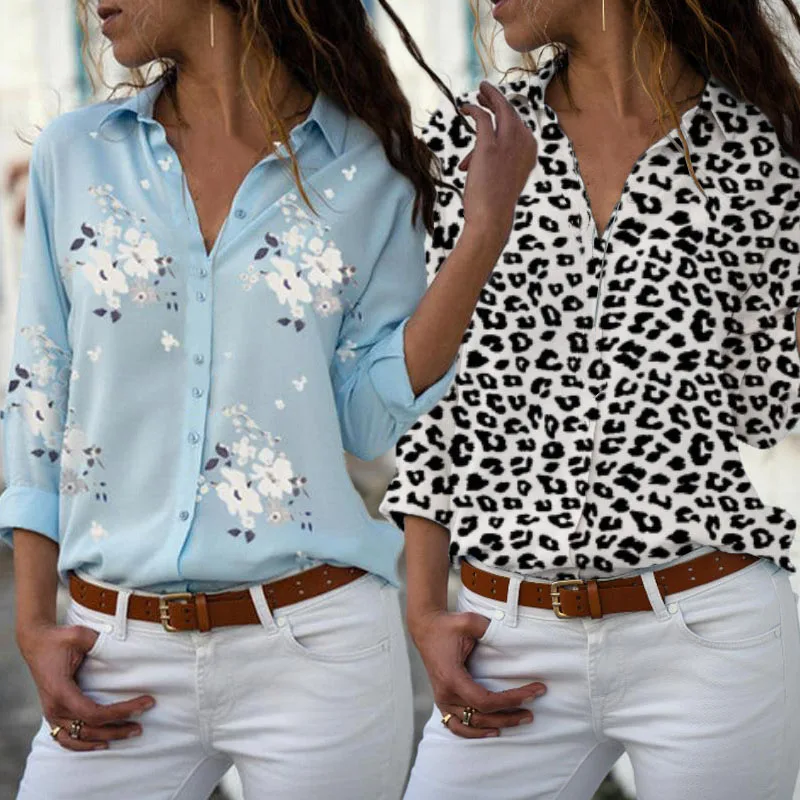 Леопардовая Цветочная шифоновая ткань с рисунком, платье, блузка, рубашка для женщин, длинный рукав, офисные женские топы, женские свободные рубашки с отложным воротником