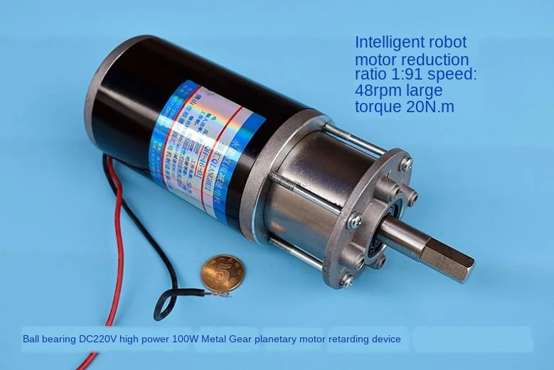 Абсолютно новый оригинальный DC220V большой рабочий ритм 100 Вт планетарный двигатель, замедлительное устройство, планетарный редуктор перед шариковым подшипником, цельнометаллическая шестерня, выходной вал изготовлен из нержавеющей стали, коэффициент уменьшения составляет около 1:91, крутящий момент достиг 20N. М, Считается, что это устройство замедления двигателя интеллектуального робота и автоматического лифта. Есть два типа белой этикетки или синей этикетки внутри. Хотя этикетка белой марки составляет 150 Вт, мы всегда считаем, что эти два типа двигателей одинакового типа. При заказе укажите белую или синюю отметку. В противном случае товар будет отправлен случайным образом.