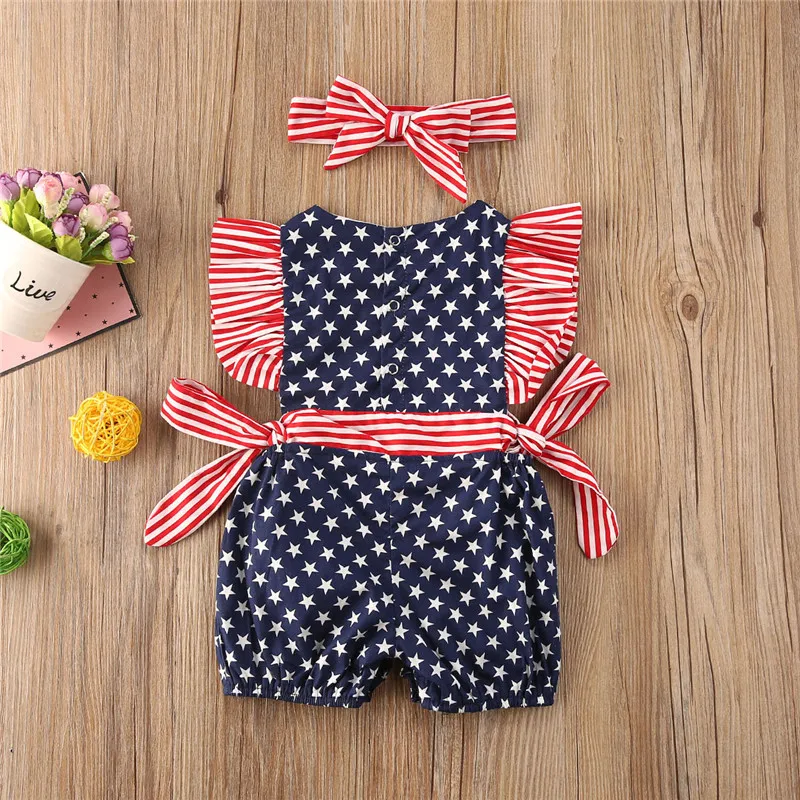 Комплект детской одежды из 2 предметов с бантиком комбинезоны для девочек с рукавами-крылышками, круглым вырезом и звездами, полосатый комбинезон с повязкой на голову, комплект на возраст от 0 до 18 месяцев
