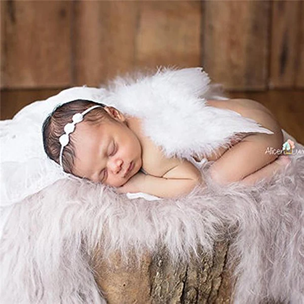 Детский костюм для фотосессии новорожденных с изображением крыльев Ангела, перьев ангела с лентой для волос с цветком