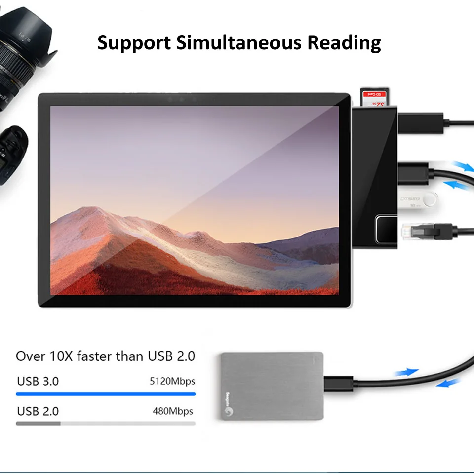 USB C концентратор для Surface Pro7 Dock Card Reader 4K HDMI-совместимый RJ45 Gigabit Ethernet PD USB-C адаптер SD/TF для Microsoft Pro 7