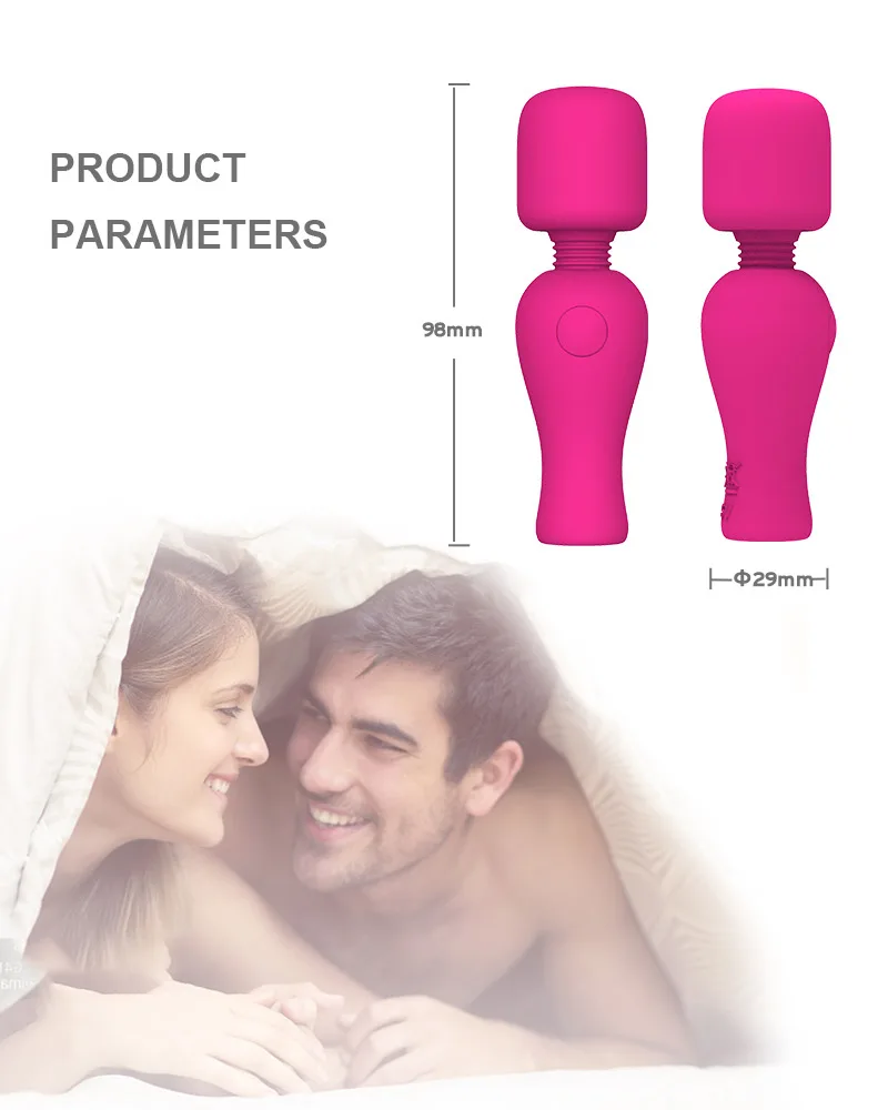 Материал Медицинский силикон, АБС Режим вибрации 7 режимов вибрации Время зарядки 2h Среднее время использования 1,5 h Размер 98 мм * 20 мм * 29 мм Номер модели DN-WM044-Mini палочка Водонепроницаемый IPX5